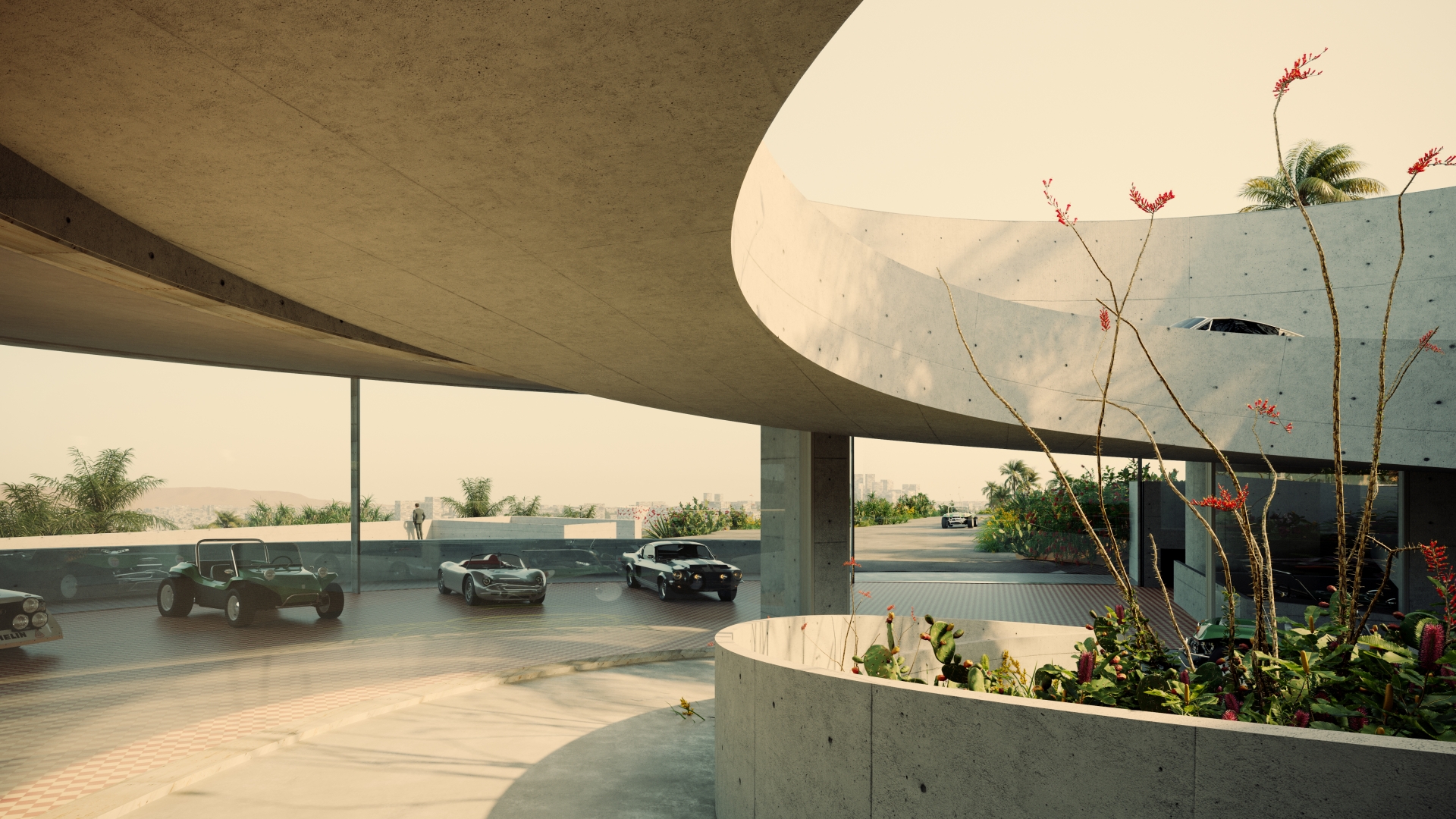 Here’s another exercise in deep recreation: a private sportscars museum in Southern California with a racing track on the roof. The rockstar architectural historian Reyner Banham learned to drive specifically so that he may study the architecture of Los Angeles. Not out of practicality but out of analytical depth, for Los Angeles, he believed, is meant to be experienced from the driver’s seat.