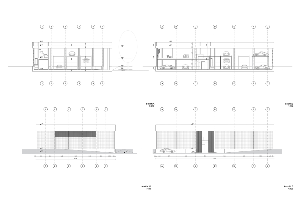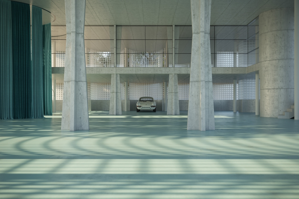 This private museum near Vienna houses a collection of sportscars passionately assembled over decades. Each car is placed within a semicircular, light-filled bay, or center stage, celebrating the owner’s fondness for every vehicle.